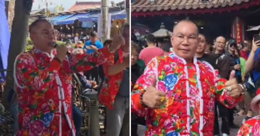他面對鏡頭開心表示:「好不容易求到兩隻金雞,帶媽媽來紫南宮人山人海,我們的土地公真是非常靈驗!」同時也向土地公祈求「天佑台灣無災、無難、無戰爭」。
