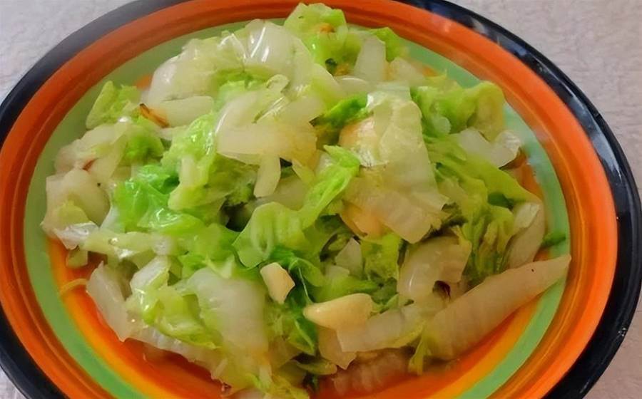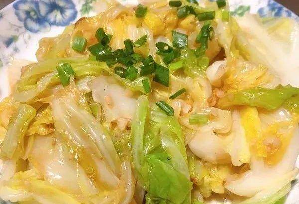 7.完出鍋前再次嘗一下,然后,將素炒白菜裝盤,準備享用。
