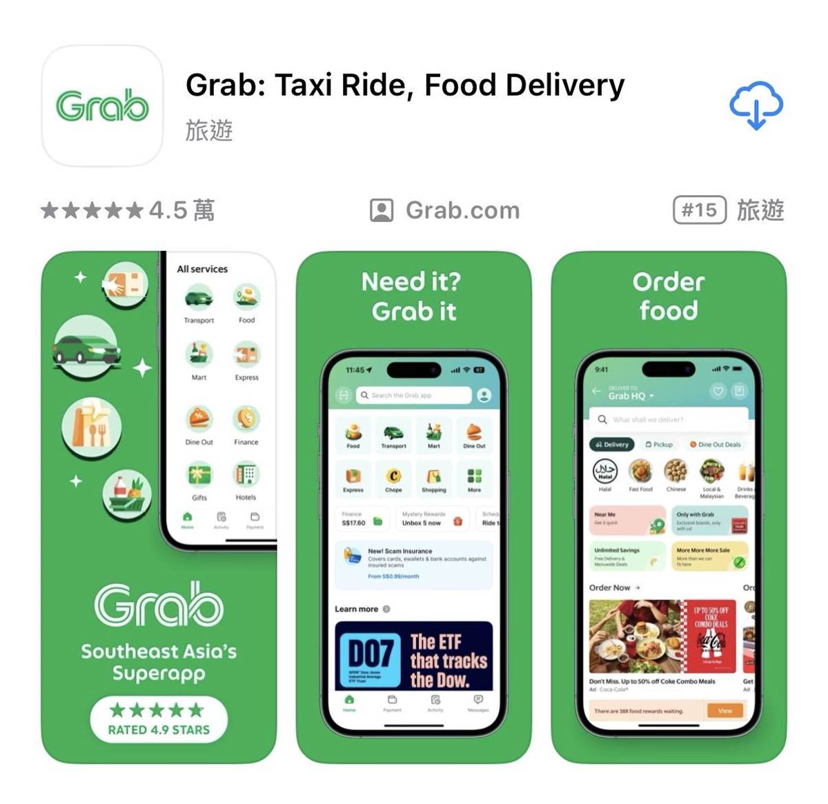 東南亞科技巨擘Grab將進軍台灣。(示意圖/翻攝Apple Store)