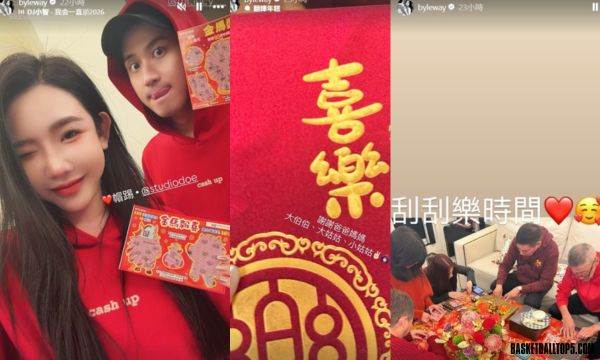 相較于前夫的傷感,許允樂的 2026 年春節顯得春風得意。她近日大方分享與新婚丈夫李玉璽的過年動態,兩人穿上喜氣洋洋的「情侶紅色帽T」,緊緊相依手持刮刮樂,幸福感爆棚!
