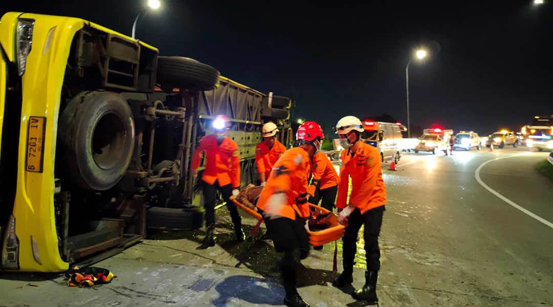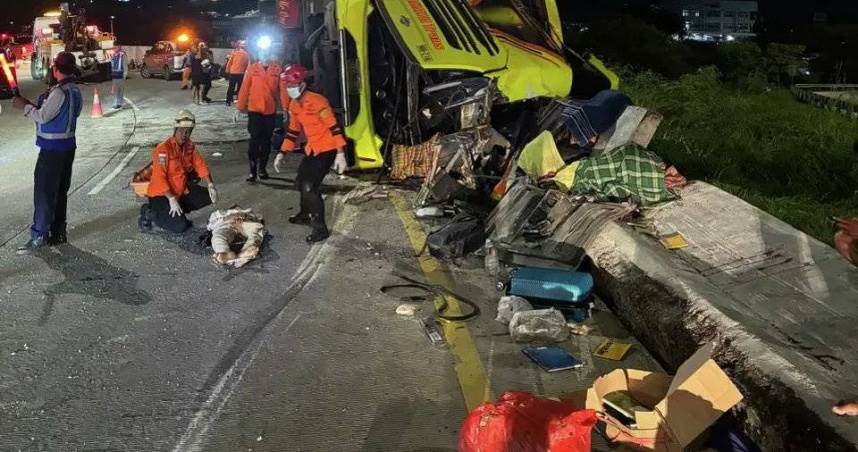 印尼爪哇島22日凌晨發生駭人巴士翻覆意外,一輛搭載34名乘客的跨省長途巴士,行經中爪哇三寶瓏市卡拉帕克收費道路時,于彎道出口匝道處突然失控,猛力撞上水泥護欄後隨即側翻倒地,。根據《美聯社》報導,這輛巴士原定從雅加達出發,目的地為日惹市古都,未料途中發生憾事。