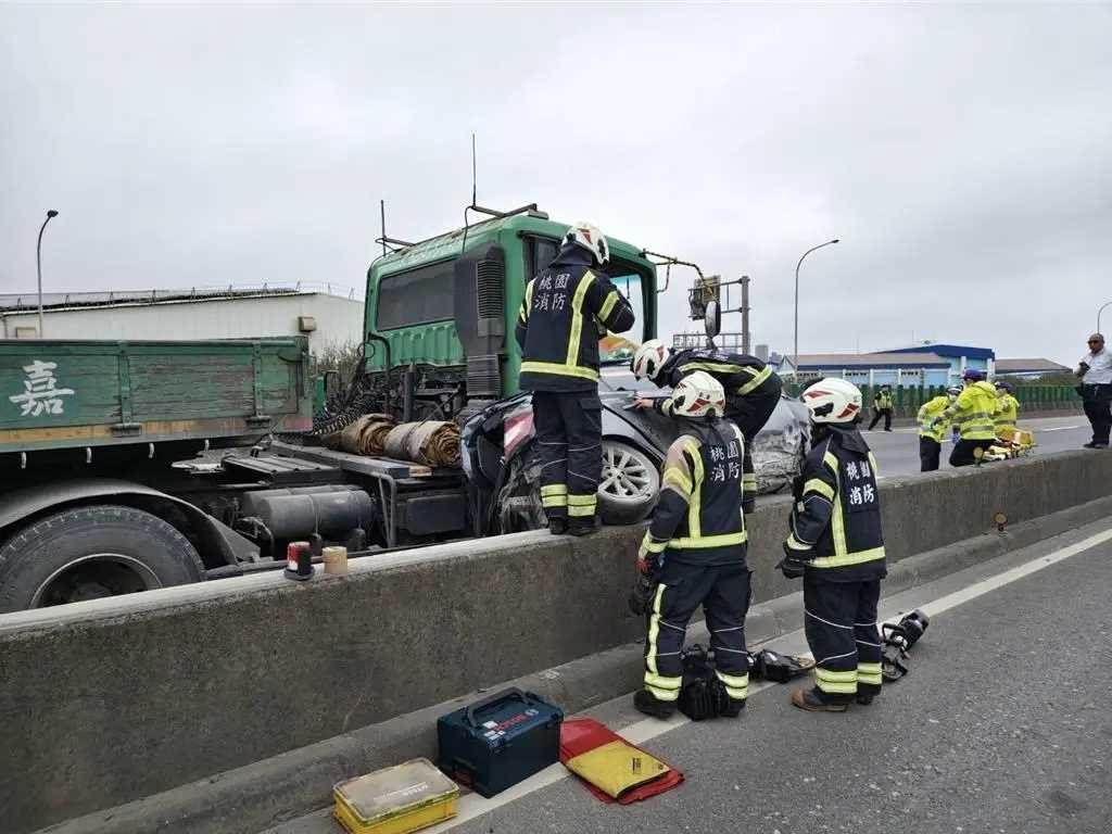 根據《ETtoday新聞雲》報導,台61線桃園觀音路段昨日發生致命交通事故,一名52歲曹姓女子駕車行經南下34公里處時,因不明原因將車輛停放于路肩,隨後遭一輛聯結車從後方高速撞擊。轎車當場被擠壓變形,右側騰空卡在中央護欄上,右前輪甚至被撞飛,整輛車幾乎半毀。