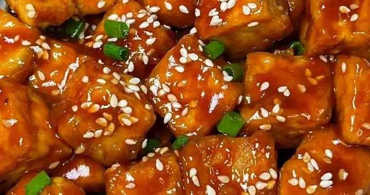 3.鍋中留底油,繼續加熱后,加入調好哦醬汁燜煮,煮至冒泡后,再倒入豆腐塊一起翻炒均勻,裹上醬汁。