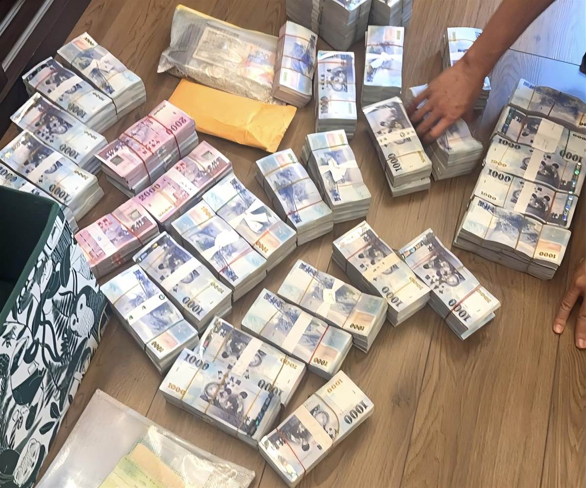 調查局幹員搜索查扣大量現金錢磚。(圖/翻攝畫面)