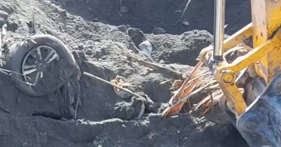 失聯夫婦的車輛被挖出。(圖/翻攝屏東特搜的Threads)