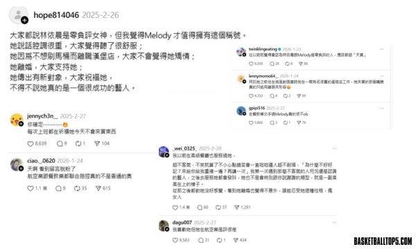 然而,貼文底下隨即出現多則網友爆料,表示在餐飲及航空業服務Melody時,曾感受到態度不佳。部分爆料內容包括:在高階餐廳點餐時不耐煩、對服務人員咄咄逼人;在蛋糕店或航空業購物、搭乘時態度高高在上,未主動表達感謝;以及對服務細節要求嚴苛,使部分服務人員感到緊張或不適。