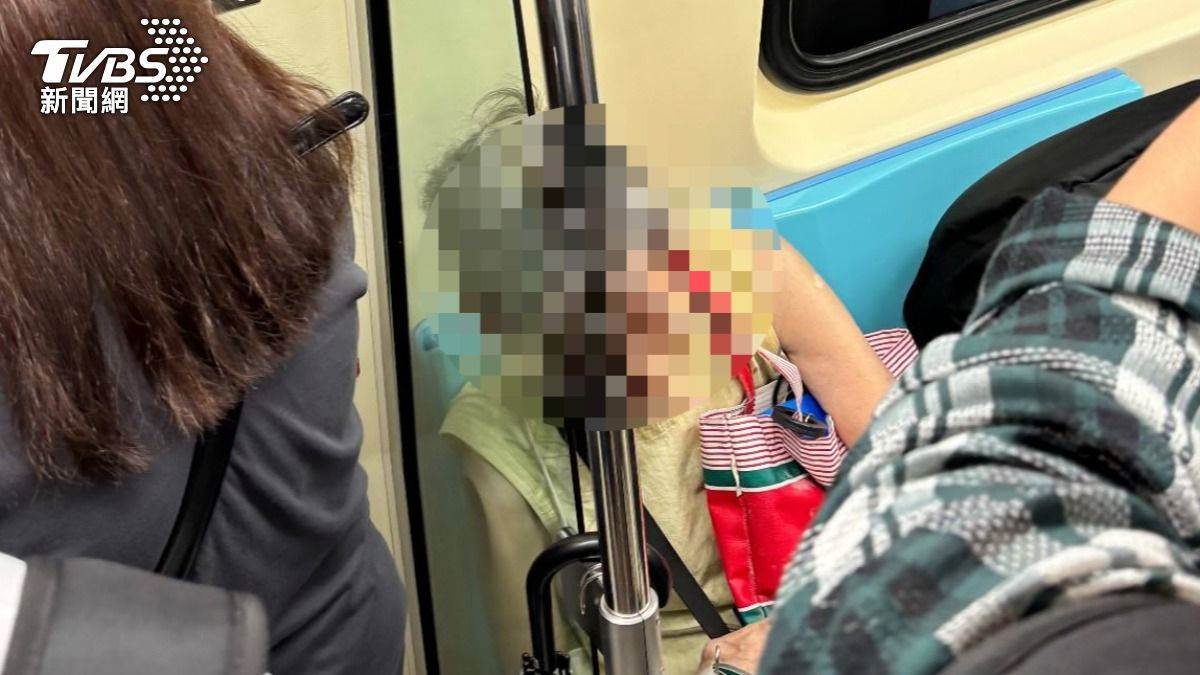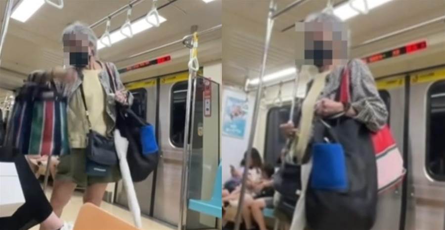 畫面顯示,曾婦依舊提著大包小包,身穿早上被逮捕時的米黃色無袖上衣,搭配紅綠相間的手提袋。她當時搭乘捷運紅線,一上車便選擇坐在門邊的「淺藍色」一般座位,靠著擋板閉眼休息,全程並未出現異常舉動。