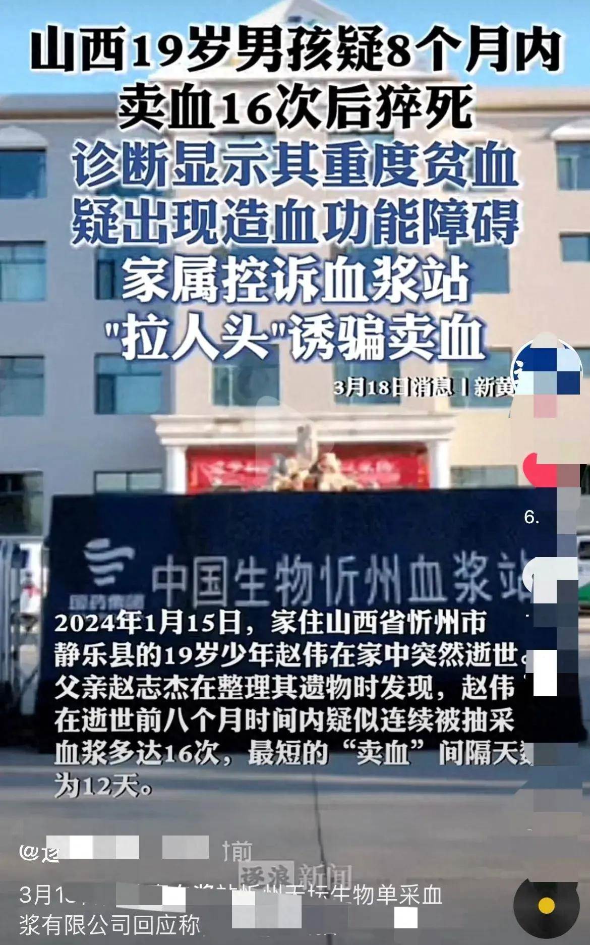 趙父氣憤表示,血漿站應該要對兒子離世負起責任,認為他們未盡善責任,也沒有確認捐血人是否符合標準就擅自抽採血漿,面對家屬質問,忻州血漿站也出面回應,指出趙姓少年的確符合抽取血漿要求,一切均符合國家規定,直言:「如有異議家屬可走法律途徑!」死因曝光後引起網友熱議,當地衛生健康委員會也透露「事件正在調查處理中」!