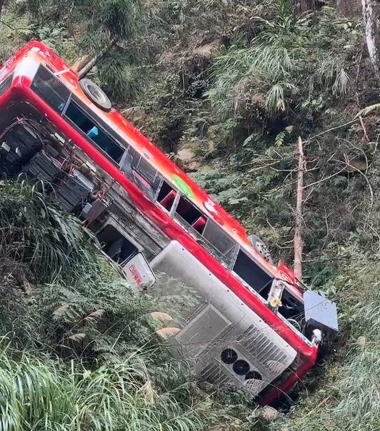 南投杉林溪遊覽車墜谷,釀成1死7傷慘劇。(圖/中天新聞)