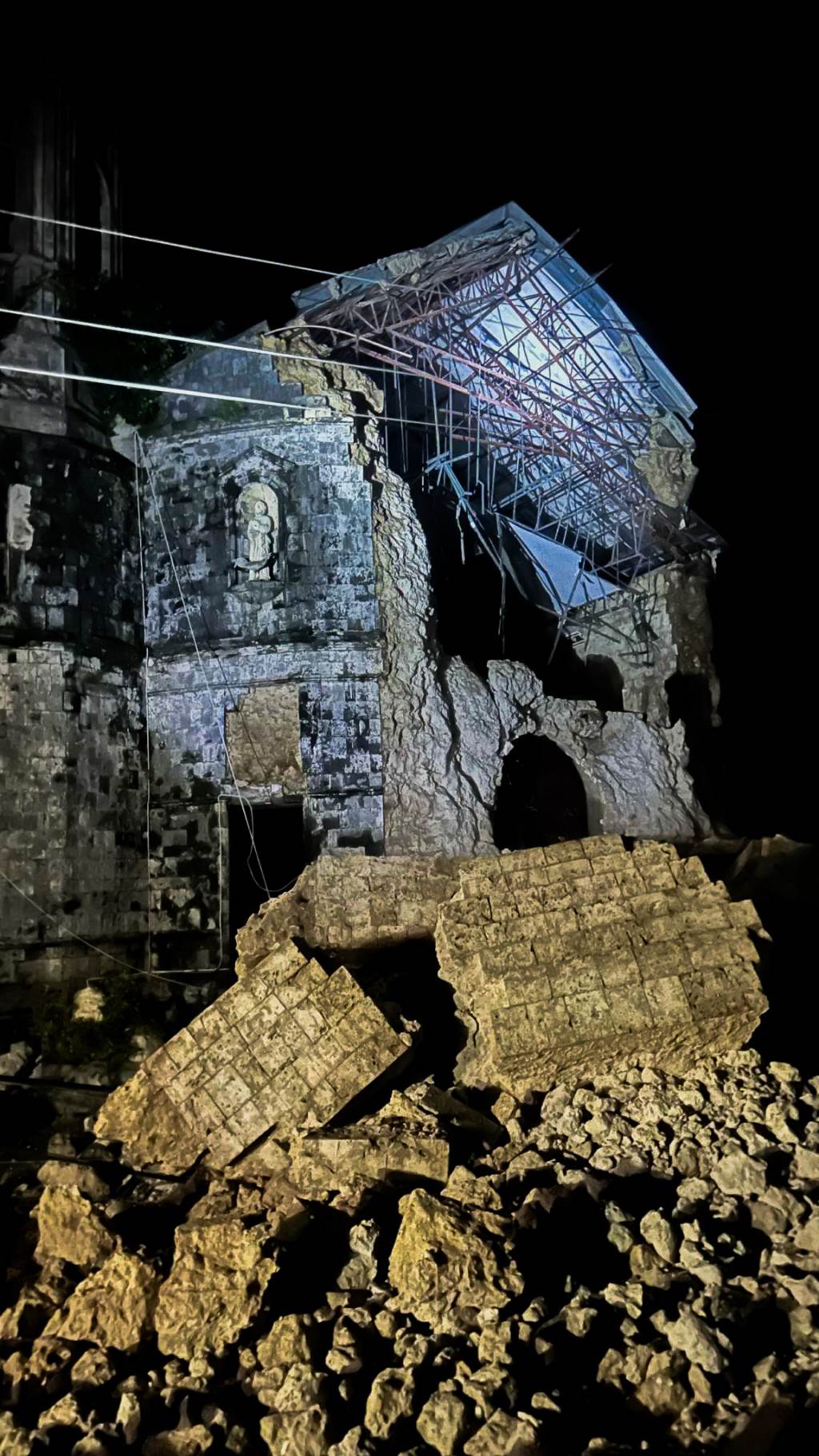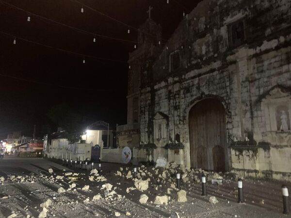 ▲強震導致班塔延島擁有百年歷史的教堂出現坍塌。(圖/翻攝自X)