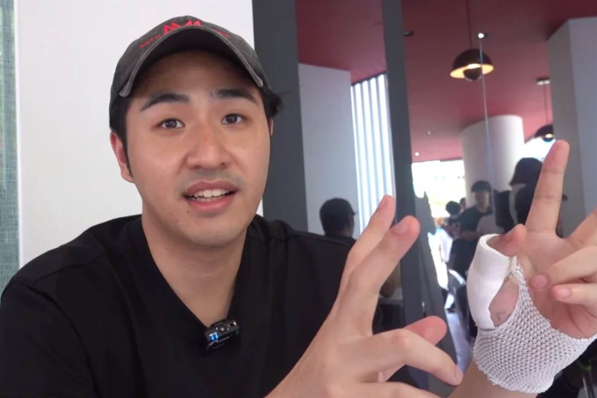他表示,事發于某次開店前,他在搬運食材時,不慎撞上送菜電梯的內壁鐵片,當場[插·入]左手掌中,鮮血頓時狂湧,連鞋子也被沾染。他情急下即刻到附近警局求助,事後也被送至新樓醫院治療,在縫了五針後才暫時止血。而他見傷勢獲得處理後,也立刻返回店內繼續工作,相當敬業。而爸爸吳宗憲事後得知此事,也向他告誡,「要小心!」。