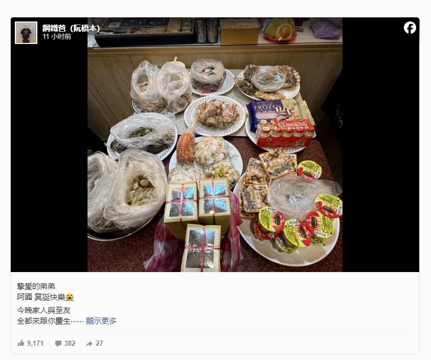 鋼鐵爸在貼文中深情寫下:「摯愛的弟弟,阿國,冥誕快樂,今晚家人與摯友,全都來跟你慶生。」他回憶兩人相識十年又五個月,顏正國一路帶著他踏入電影圈,鼓勵他出書、上台演講,「太多太多的沒有你,我就無法完成的事。