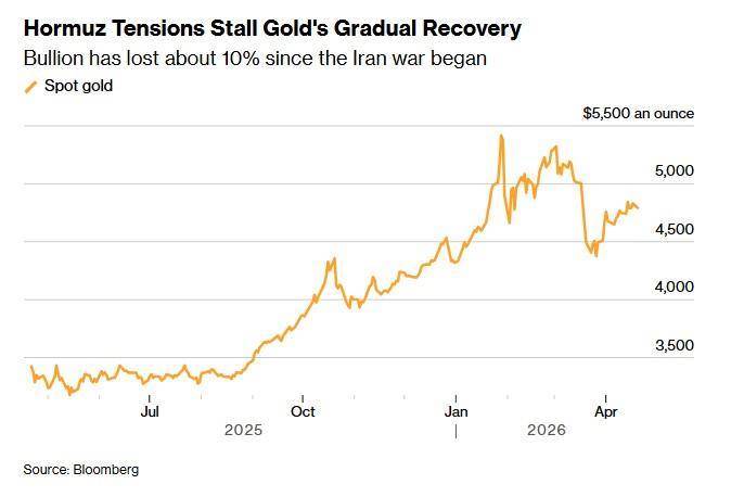 截至20日上午10時,黃金現貨價報每盎司4,801.14美元,先前一度下探至4,737.