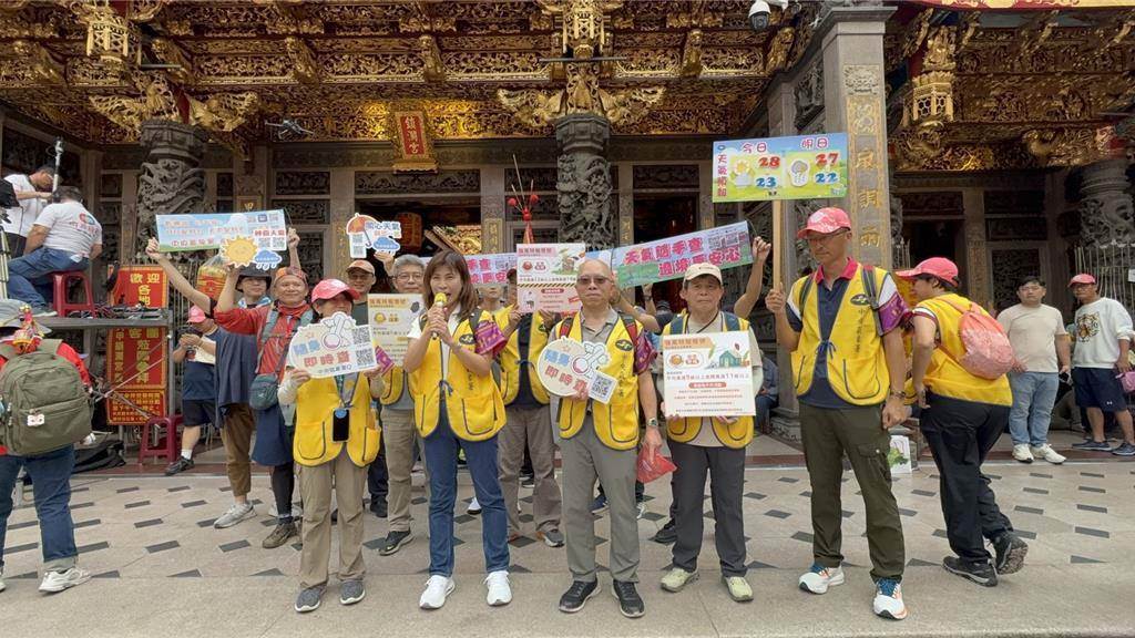 為了更貼近民眾需求,氣象署團隊並未侷限于廟口服務。完成下午場播報後,團隊隨著信眾步媽祖遶境隊伍,沿途于水雲宮、水朝興宮等宮廟進行快閃天氣播報,與信眾進行互動交流。這種機動式的服務模式讓氣象資訊能更廣泛地傳遞給各地信眾。