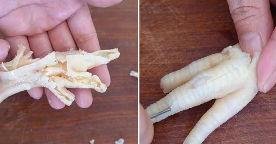 1)剪去雞爪腳趾,清洗時加適量精鹽和小蘇打;