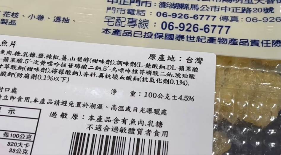 澎湖一間特產行近日遭網路揭露產品產地標示疑慮,並傳出民眾食用後出現不適情形。衛生局于16日派員前往稽查,針對現場食品進行清點與查核,共計162包產品,在調查結果釐清前,已要求業者全面暫停販售。