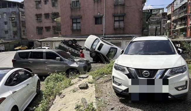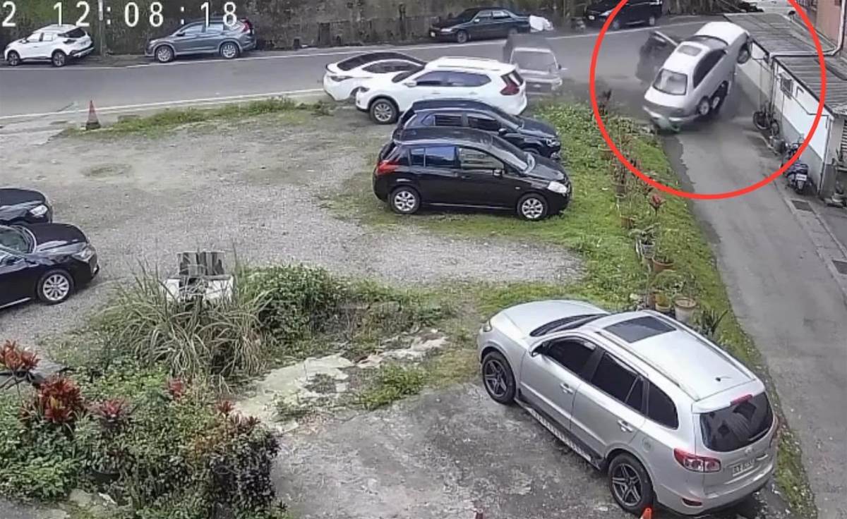 警方調查,朱姓女子(67歲)12日中午12時許駕駛自小客車行經基隆市七堵區東新街,在一處左彎疑因車速過快導致車輛失控,衝向路邊先撞上停放的4輛車後,因撞擊力道強大,再撞及民宅外牆才停下,最後車子騎在一輛貨車上乘倒栽蔥狀態。