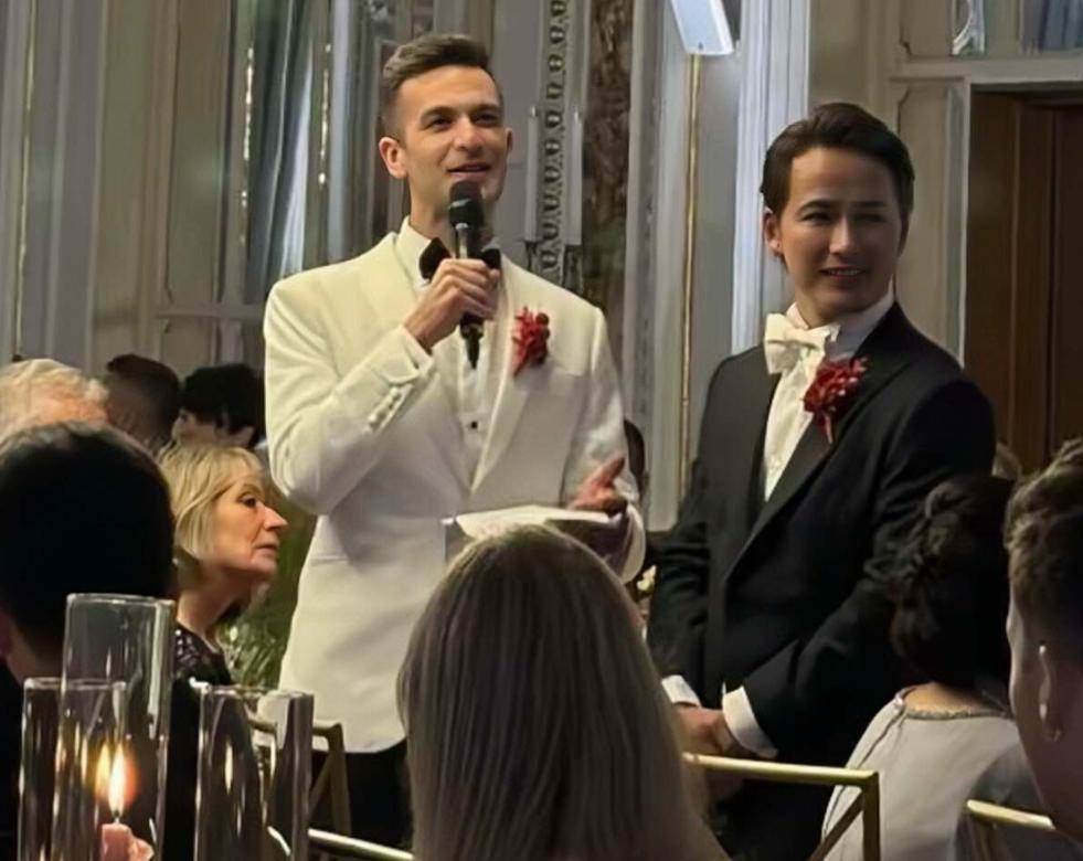 鍾利華的另一半是個義大利人,從照片看起來挺帥的,身材高大,五官深邃,兩個人站在一起倒也不違和,不過我覺得這種跨國的同性戀情,文化差異肯定是個問題,但既然能走到結婚這一步,說明他們已經磨合得差不多了吧。