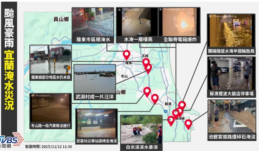 近日,受到颱風鳳凰外圍環流與東北季風共伴效應的雙重影響,宜蘭地區遭遇驚人暴雨侵襲,尤其蘇澳一帶昨日(11日)累積雨量驚人,導致多處嚴重淹水,部分地區水勢一度淹至一層樓高,民宅進水、道路中斷,並陸續傳出停電、停水等災情,民眾生活大受影響。其中蘇澳鎮、羅東鎮、冬山鄉等地受創較為嚴重,地方政府與相關單位緊急投入搶修與疏散工作,全力應對極端天氣帶來的挑戰。