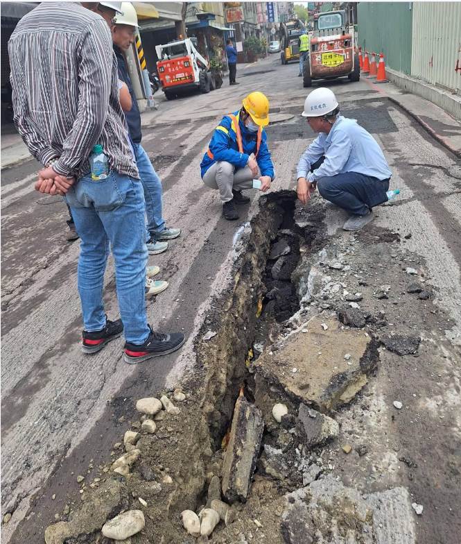 回顧這起誇張的天坑連發事件,始于前年3月該處某工地施工不慎,今年(2026年)1月20日下午2點再度出現天坑,相關單位緊急灌漿,但同日晚上才剛補好,施工車輛都還在,隔天又來一次,不過1月21日的這起,相關單位表示調查後事發原因疑似因水公司地下水管破裂,造成地基掏空而坍塌,塌陷區域長約7公尺、寬1.
