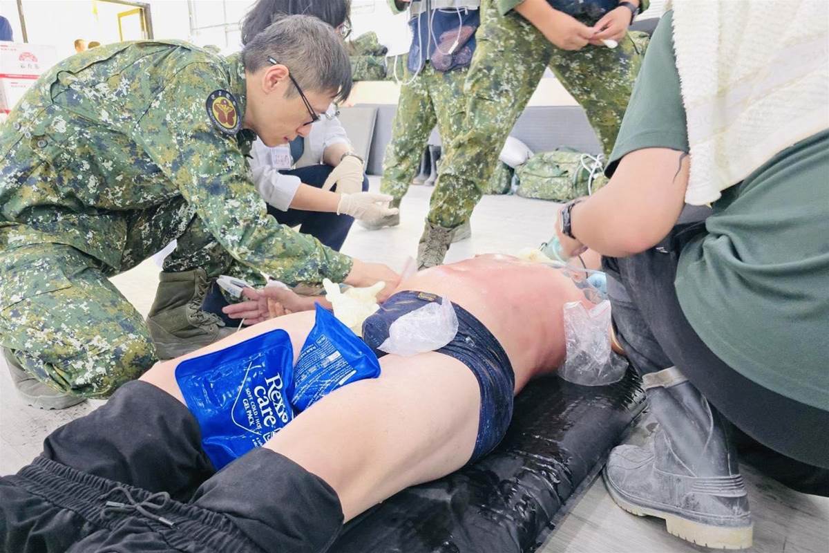 國軍花蓮總醫院在花蓮光復鄉糖廠設立的醫療站,近日成功救治一名因熱衰竭倒地的中年男性。該名男子在災區進行鏟土作業時突然倒地,體溫飆升至38.5度,收縮壓僅90mmHg,心跳每分鐘高達120多下,一度命危,情況危急。