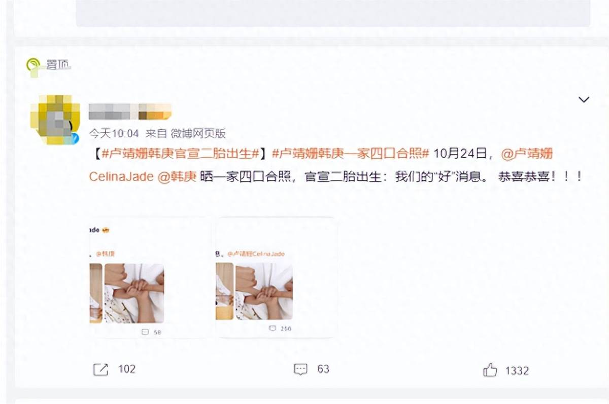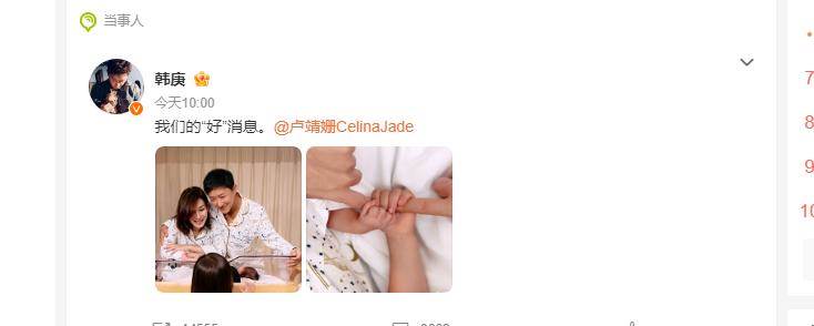 近日,韓庚與妻子在某社交平台上,高調官宣了二胎出生的消息。