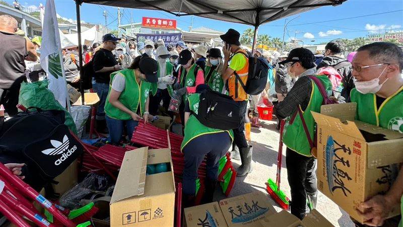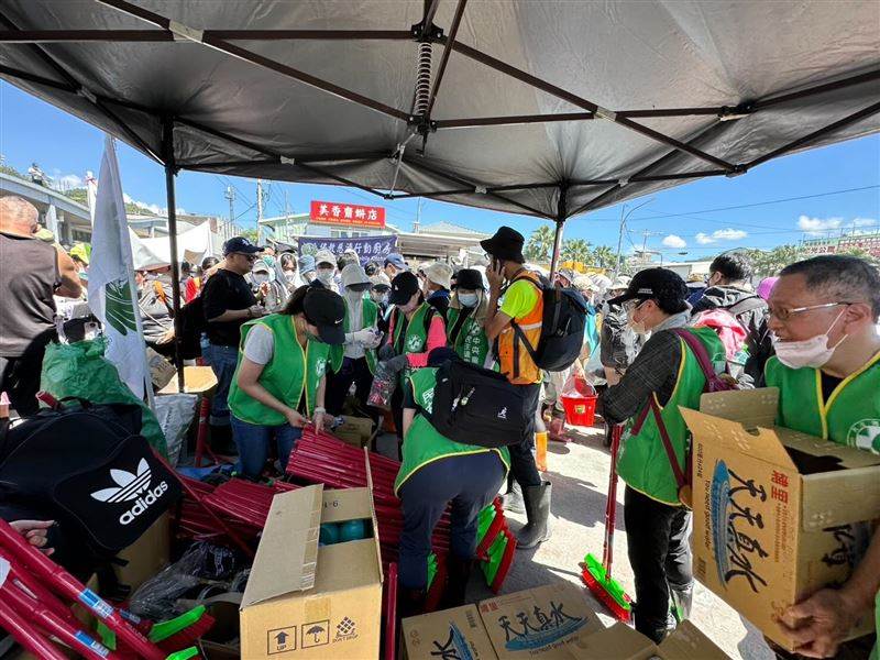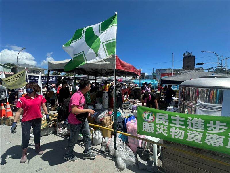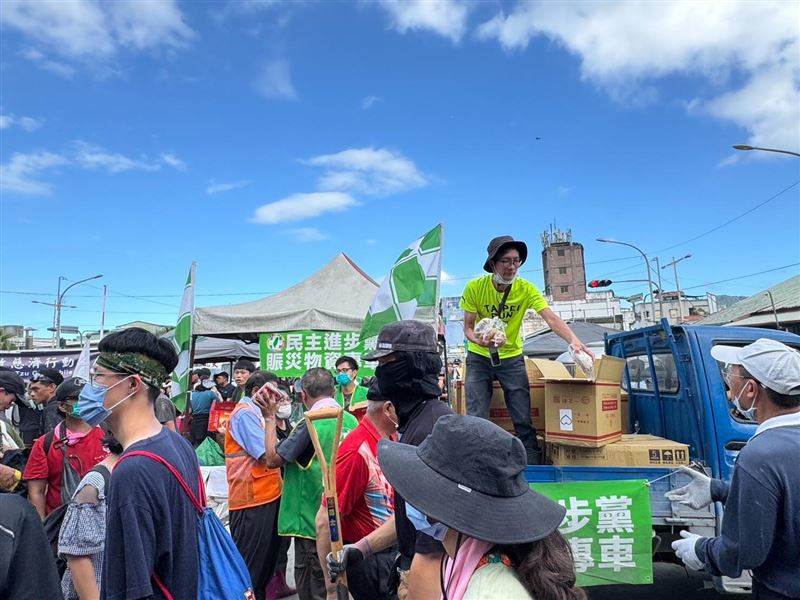 關于民進黨的救災團隊,何博文說明,「愛心滿滿,支援不間斷」!感謝黨部同仁持續排班輪值協助花蓮災民,今天由賴清德主席辦公室主任周威佑帶領,中央和地方黨公職一方面協助災民整理家園。另方面也直接在光復鄉火車站前直接設立物資中心,發放工具、食物、礦泉水、清潔用品等物資,給災民和前往支援的鏟子超人。