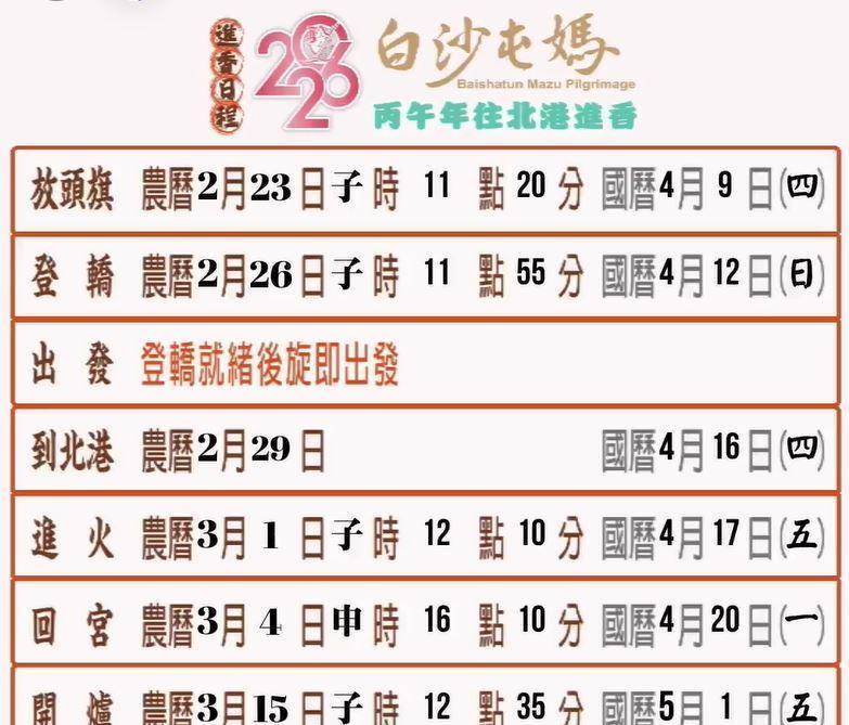 正確資訊仍以白沙屯拱天宮公佈為主。