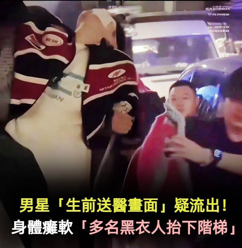 最新流出的醫護監視器畫面,拍攝到事發當晚驚人場景。影片中可見一名身穿紅黑外套配白色上衣的男子,被數名黑衣人緊急運送。該名男子全身癱軟無力,頭部後仰,意識狀態不明。
