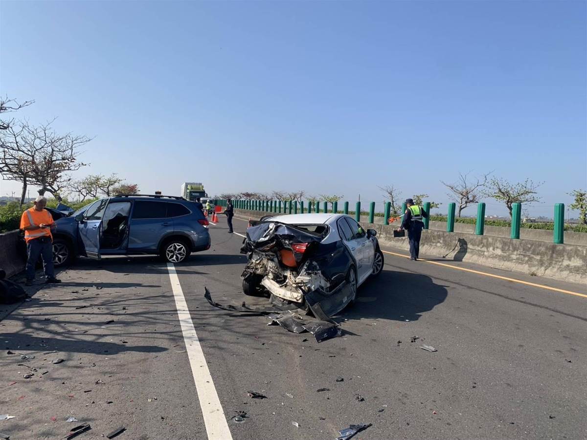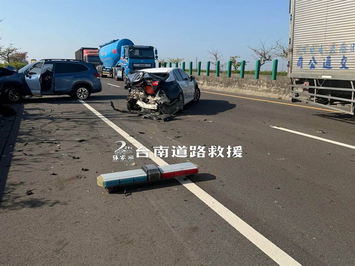 據調查事發地點在276.1公里,嘉義布袋處,整起交通事故釀成追撞警車的藍色自小客車駕駛受傷,所幸現年36歲的男駕駛僅受輕傷,送柳營奇美醫院救治後無生命危險,在場的員警未遭波及,目前警方正釐清兩起交通事故的肇事責任歸屬。