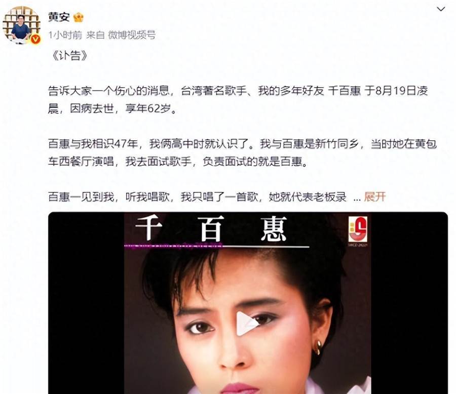 8月20號,原本是再普通不過的一天,沒想到噩耗襲來,台灣知名歌手千百惠不幸因病去世。由于這一消息太過于突然,以至于很多粉絲都不敢相信,不過翻看其視訊賬號,以及消息來源不難判斷,這一消息是真實的。
