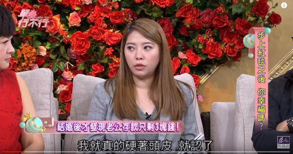 根據《ETtoday星光雲》報導,當年阿弟頂著是Energy成員的光環,她以為事業應該多少還可以,但沒想到演藝圈的生活是動盪不安,她懷孕時發現阿弟存款只有3塊錢,但是孩子都懷了,她只好硬著頭皮嫁給他,當時阿弟的公司原本推薦他演偶像劇,但一得知他當爸了就立刻拒絕說「你現在已經是爸爸、人夫了,誰要看你拍的偶像劇」,就連男二角色都無法演出,一家人生計受影響讓老婆相當擔心。