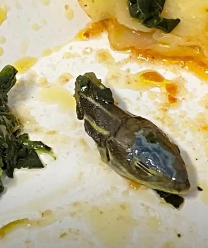 餐盒裡冒出奇怪動物也不是第一次,空服員也曾投訴過飛機餐裡出現生的蝸牛和甲蟲。如果讓你選的話,你寧願飛機餐出現生蝸牛、蟲蟲還是蛇頭呢?