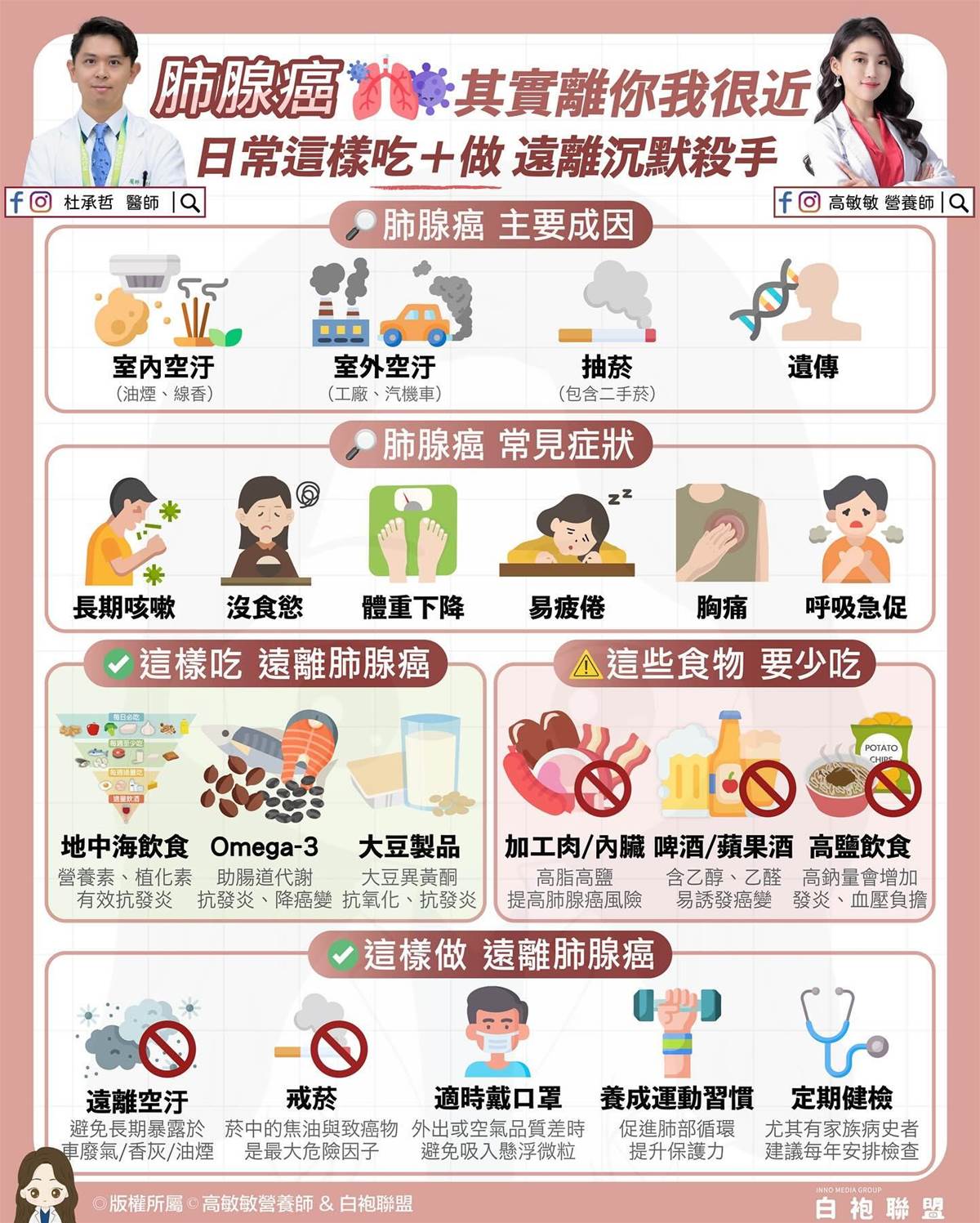 文末,高敏敏提醒,肺腺癌並非遙不可及的疾病,「日常油煙、空氣汙染、環境毒素,都可能讓肺部受到慢性傷害」。她呼籲民眾多關心自己的呼吸健康,「多一份留意、多一份防護,讓我們一起養出乾淨好肺,呼吸更自在。」