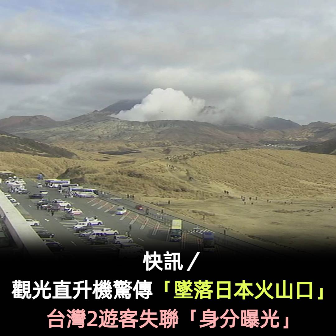 日本熊本縣20日上午傳出令人憂心的訊息,一架執行觀光任務的直升機在阿蘇火山區域與地面失去聯絡,當地警方調派直升機展開搜尋,于下午4時10分左右在阿蘇中嶽第一火山口東北方的山坡地帶,尋獲嚴重毀損的飛機殘骸。