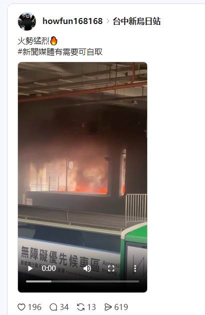 台鐵對此也做出回應,表示今天因為新烏日站路線旁的清潔公司回收場發生火災,為配合消防隊滅火需要,11點46分起,台中=新烏日=成功東正線封鎖斷電進行滅火,暫以西正線單線雙向行車,造成旅客不便深感抱歉。