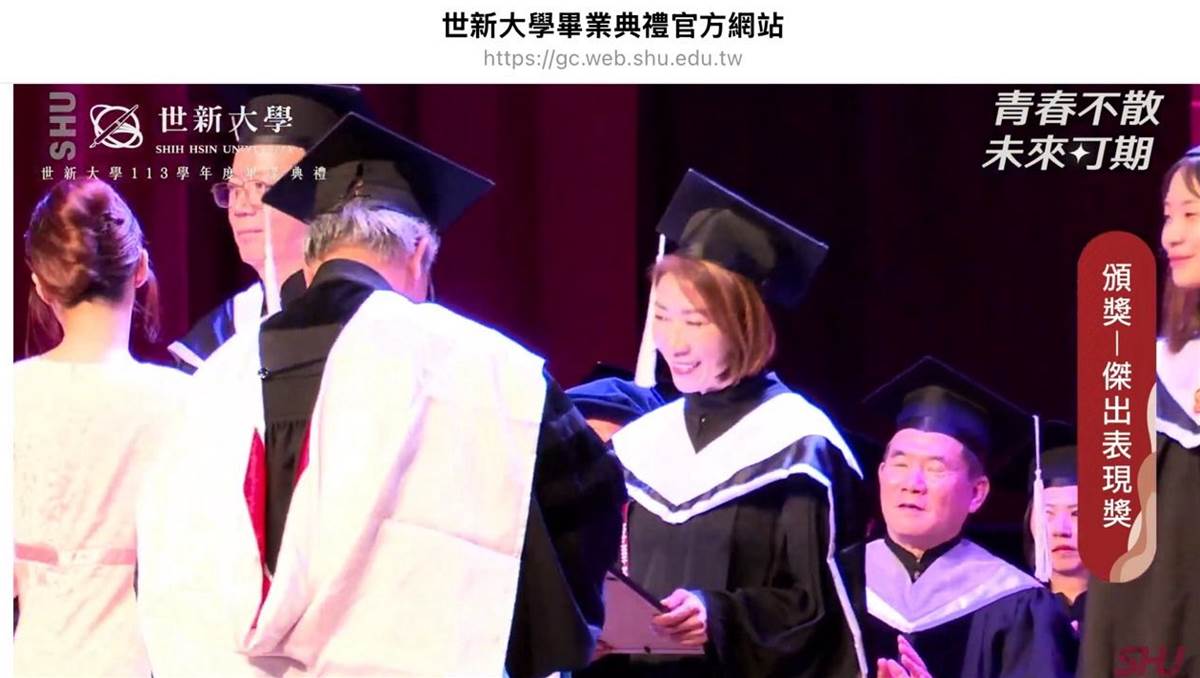 此外,她還在畢業典禮中榮獲「傑出表現獎」,讓她喜出望外,但也感到有些不好意思。她說,因為班上還有其他表現優異的同學,但對此殊榮還是無比興奮、開心,也對校方的肯定表達謝意。最後,她也感性表示,「學習永遠不嫌晚」,能在半百後持續精進自己,豐富人生經驗,也算是完成心中一直以來的夢想與里程碑。