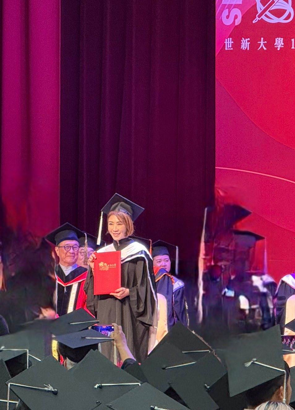 回顧這段碩士旅程,她直言最重要的就是「毅力」2字。因為碩士課程與過往不同,需要自行安排讀書計畫,且自己又有繁忙的演藝工作,須在休息時間再返回教室上課,雖然需要不少精力去堅持,但也讓她獲得心靈上的放鬆,因此如今終于結束學業,也非常感激同學、師長的鼎力相助。
