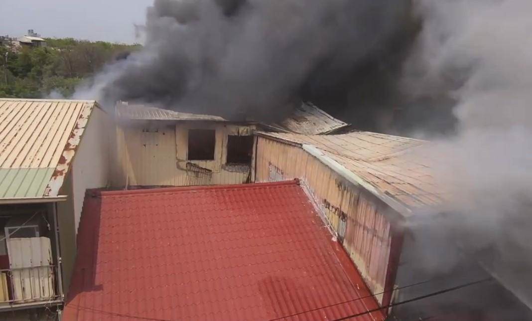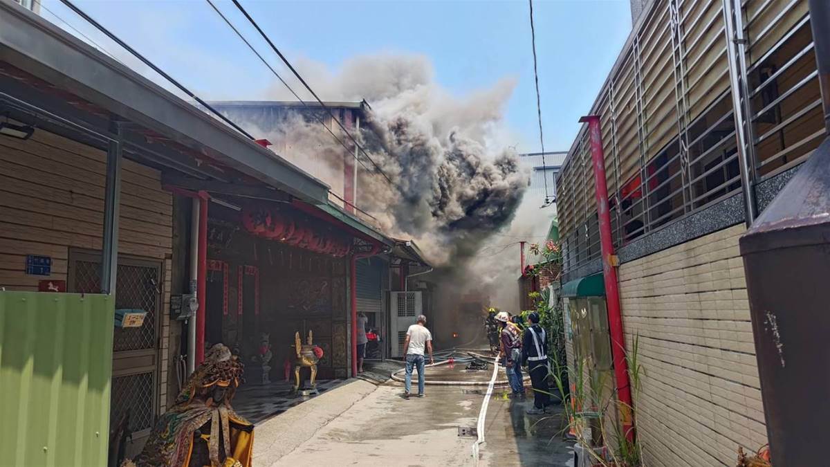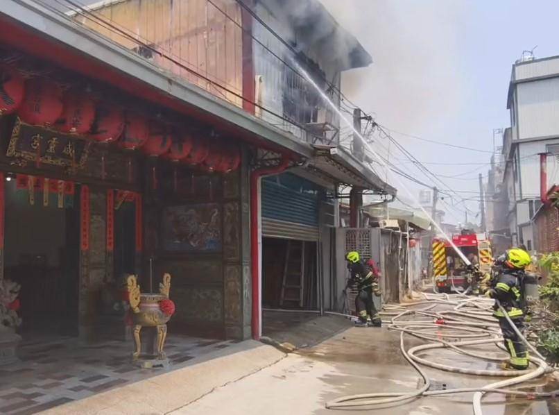 今(3)日上午11時許,屏東縣屏東市光復路一處2樓鐵皮屋驚傳火警,火舌從窗戶竄出、濃濃黑煙直衝天際,警消獲報趕抵現場救援,初步回報無人受傷。由于火災地點緊鄰威靈宮,廟方人員緊急將神像搬離現場。