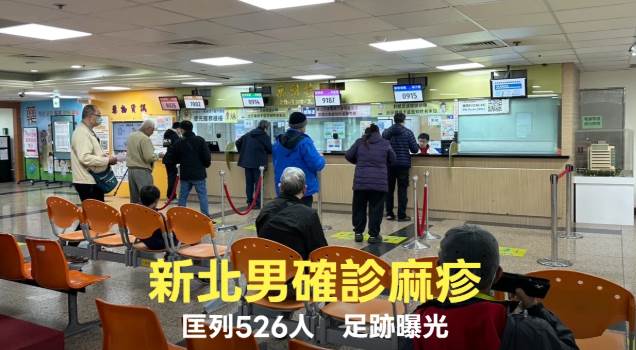 新北市衛生局于2月26日接獲麻疹確診通報,中和區42歲男性,為先前境外確診個案之接觸者,于監測期間2月19日開始出現咳嗽、發燒,23日出現紅疹,24日由醫院通報後確診,目前狀況穩定,居家隔離中。針對此個案已匡列包括同住親友5名共526名接觸者,將持續監測至3月17日。