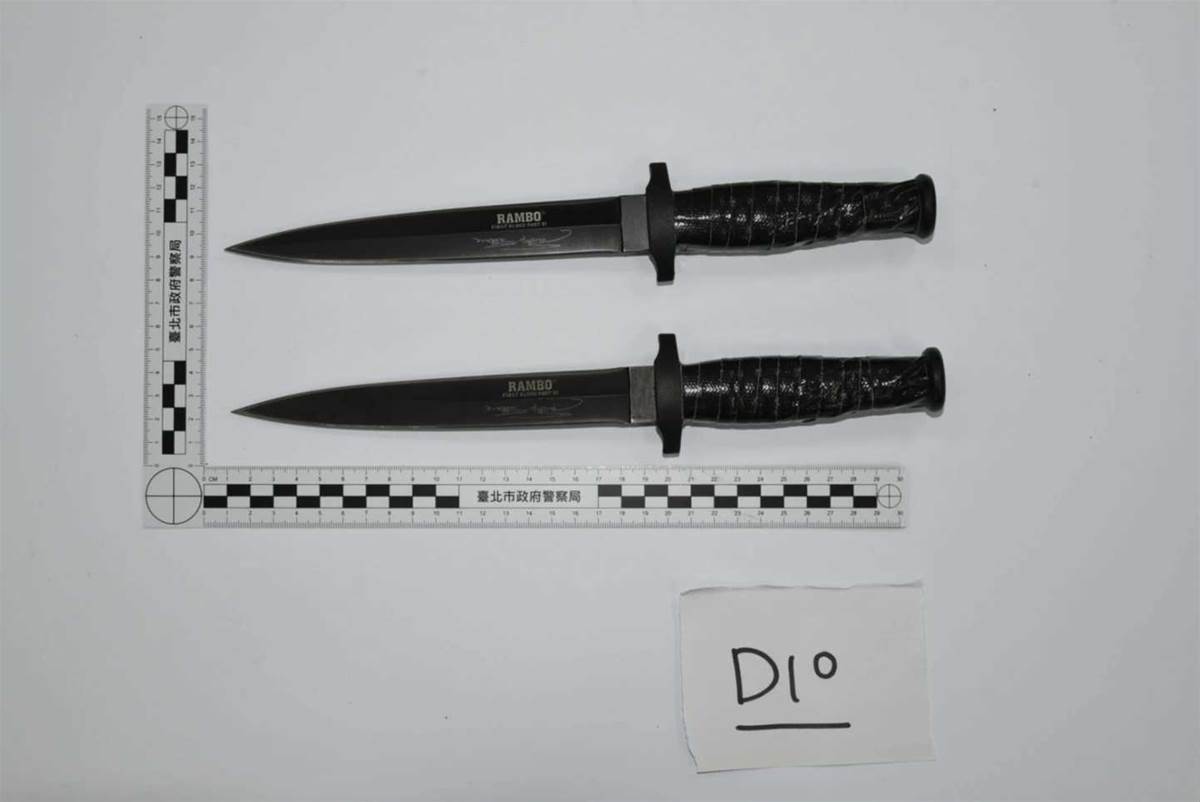專案小組查扣張文犯案用的藍波刀。翻攝畫面