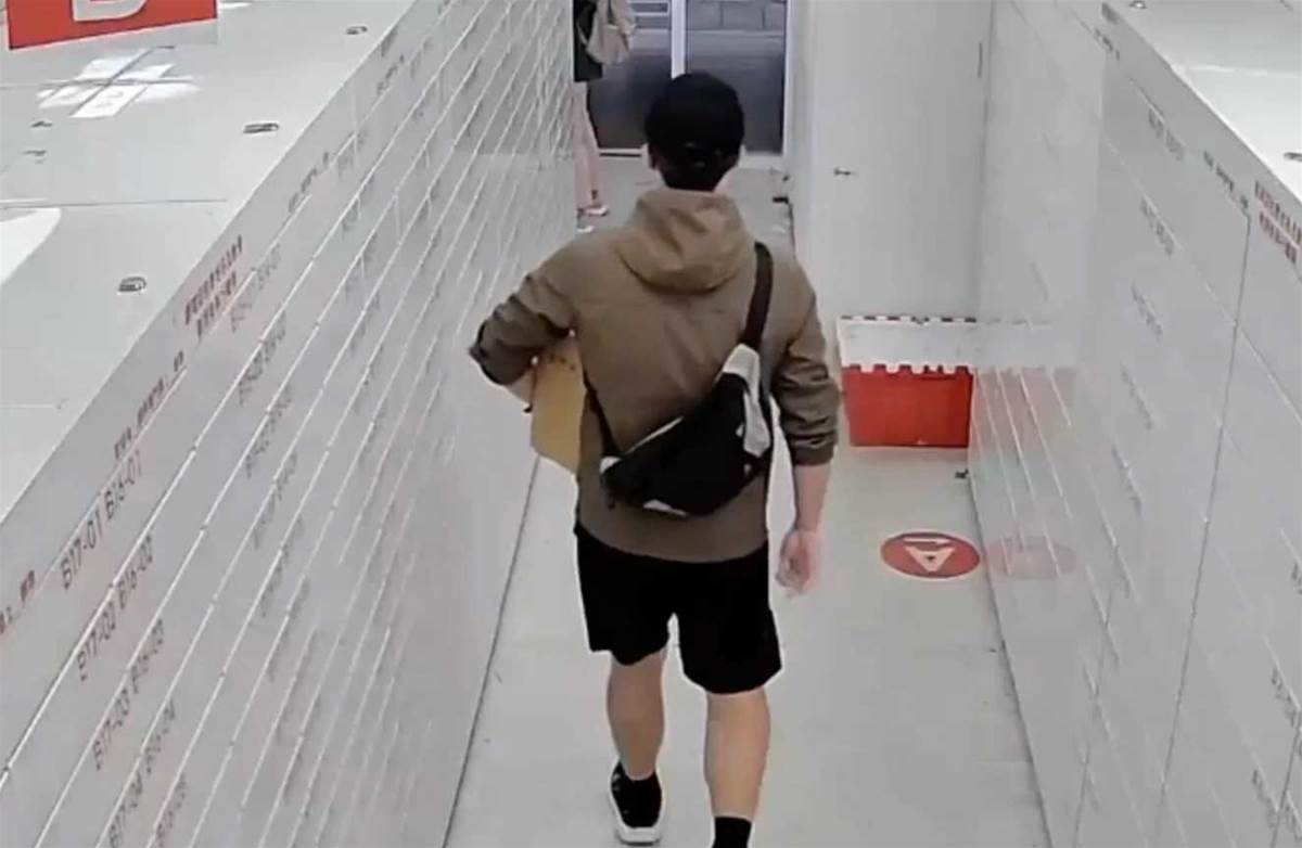 張文從蝦皮智取店領貨後離去。翻攝畫面