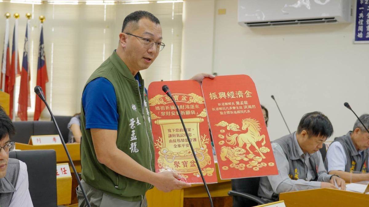 新港鄉鄉長葉孟龍表示,為振興經濟,以及共度丹娜絲颱風創下的嚴重災害,預計于115年2月7日普發「振興經濟金3000元」,讓民眾在農曆新年到來前能夠提前領到紅包,趁過年前的消費高峰期,帶動新港鄉地區經濟發展。更加碼結合「聚財安安祈福袋」助長地方產業。