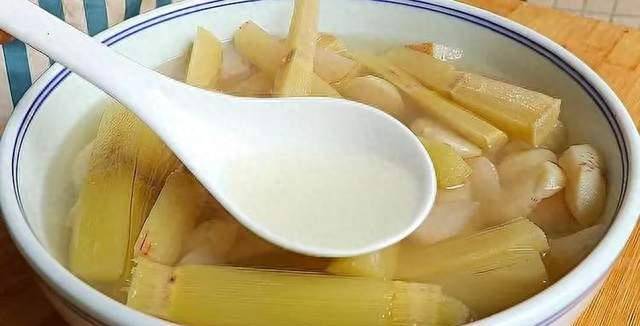 2.將甘蔗塊和生姜倒入砂鍋中,加入足夠的水,用大火煮沸,換成小火慢燉20分鐘。