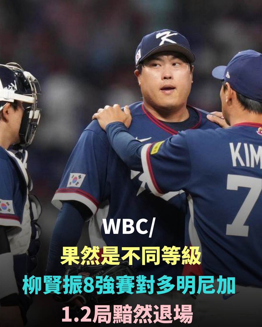 柳賢振被任命為今天韓國交手多明尼加8強賽的先發投手,儘管首打席先送給塔提斯(Fernando Tatis Jr.)一次三振,1局完成三上三下安全下莊,不過到了2局下半,他在一出局一壘有人時被卡米內羅(Junior Caminero)擊出二壘安打,之後又接連投出保送、被敲出2支安打,單局失掉3分退場。