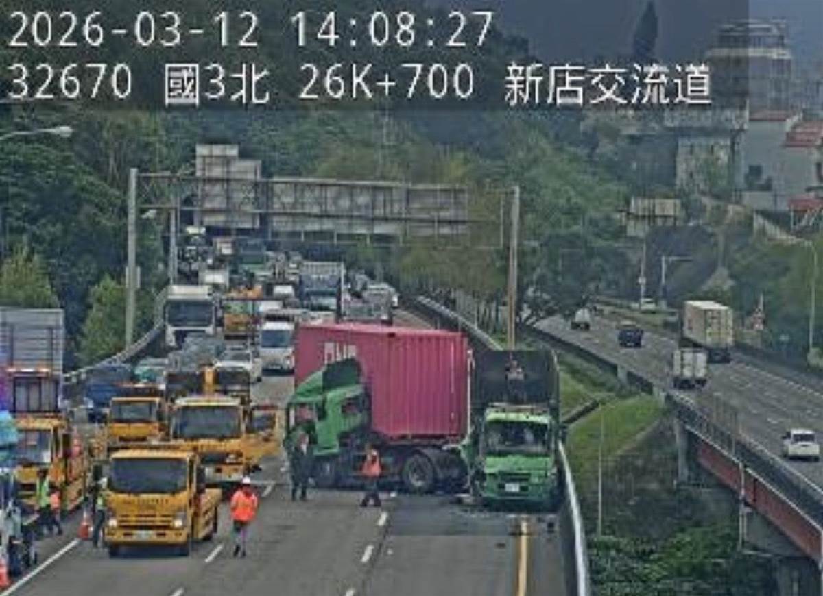 最新消息,根據國道1968跟警廣路況資訊,今(12日)下午1點49分,在國道3號北向26.9公里,發生貨櫃車先撞到施工緩撞車再追撞大貨車的重大交通事故,整起事故占用外側3線車道,暫時全線封閉,國道警方和高公局、消防隊等相關單位都已趕抵現場,全力排除狀況中,傷亡狀況暫時不明,交通事故發生確切原因仍有待國道警方調查釐清,若有更進一步的消息,《中天新聞網》會為您持續掌握。