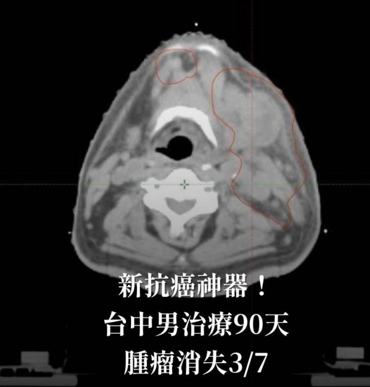 而放射腫瘤科主任葉啟源分享,有名57歲的患者2024年5月確診口腔癌第一期,經手術清除癌細胞並恢復良好,但今年5月患者左臉頰到肩頸處,突然長出約350立方公分的腫瘤,因腫瘤面積太大,手術風險高,于是先採銳視刀適應性放射治療,一個半月進行了35次,期間每天都會利用新世代影像導航技術掃描,確認治療位置和腫瘤大小,最後腫瘤體積也縮減到200立方公分左右,再安排進行化療與手術,提高完整清除腫瘤的成功率。