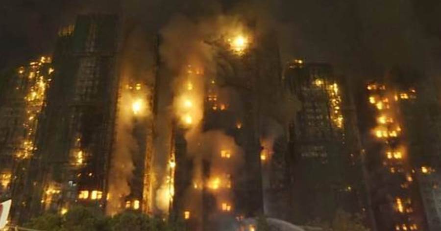 宏福苑火警最初自社區「宏昌閣」外牆鷹架冒出濃煙,火勢順著棚架與防護網一路向上延燒,並波及七棟住宅大樓。宏福苑正進行外牆維護工程,多處搭設鷹架並以塑膠防護網包覆,為此次迅速延燒的重要因素之一。