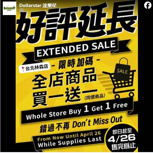 隨著品牌進入結束營業倒數,達樂星在官網發布感恩回饋公告,即日起全臺門市推出「全店同價商品買一送一」的超值優惠,活動預計進行至4月6日為止(售完即止),臺北林森店則將優惠活動延長至4月26日。
