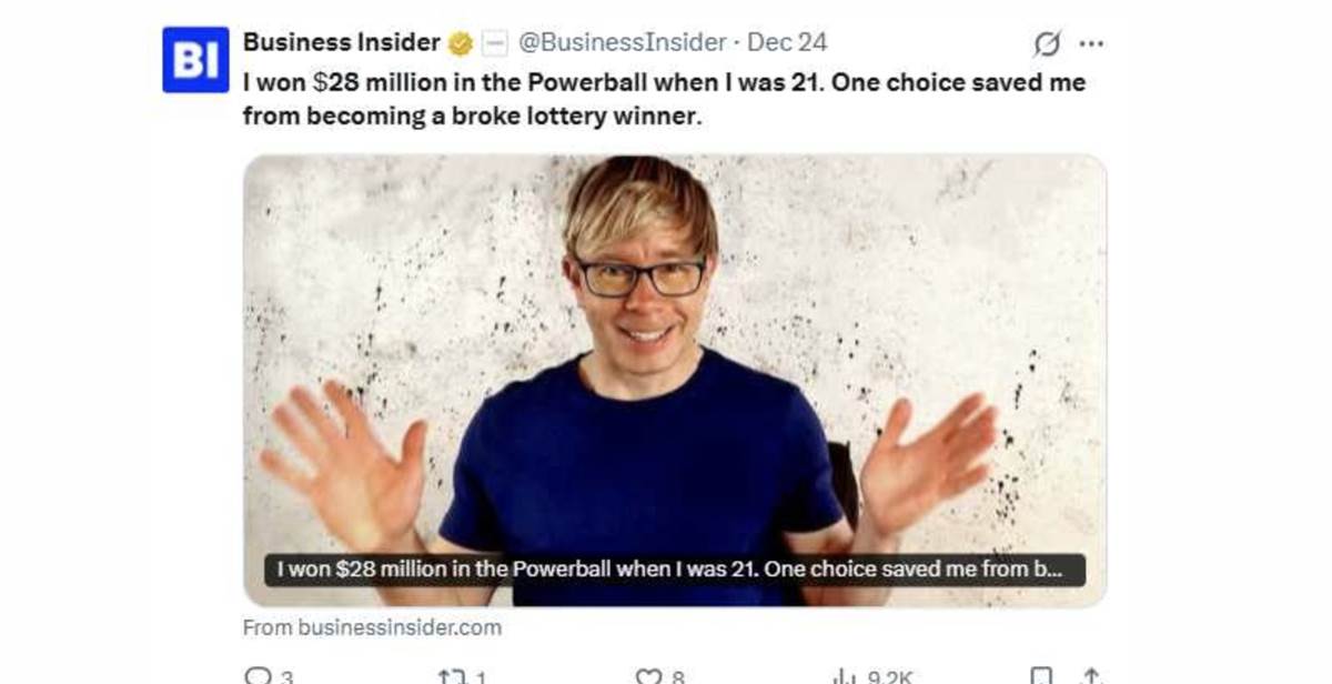 這位名叫舒爾茲的幸運兒,並沒有像多數中獎人那樣快速揮霍,反而靠著「一招」成功守住這筆橫財。不過他也坦言,中獎後遇到的麻煩事,讓他體會到有錢人的另類煩惱。